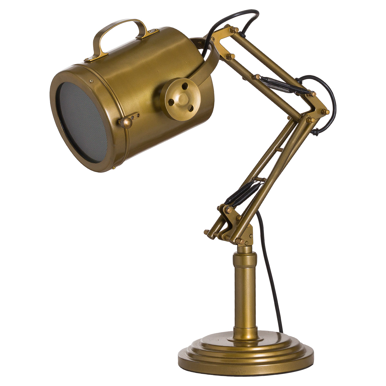 This is the Brass Industrial Adjustable Spot Light Lamp. Built from iron in a familiar and well-loved design, this fully adjustable lamp’s shiny brass finish gives it the stand out to turn heads and close sales. This item takes the universally available E27 large screw bulb.